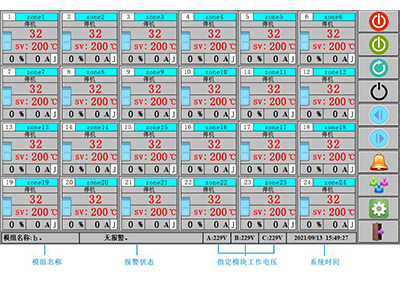 集中觸屏機箱系統升級優化 ----TC3/2000系列如圖1所示此圖為觸摸屏人機交互的頁面,每個溫區的運行狀態,設定的溫度,測量的溫度,輸出功率,以及輸出的電流相對應的顯示在每個溫區對應的界面中。用戶...